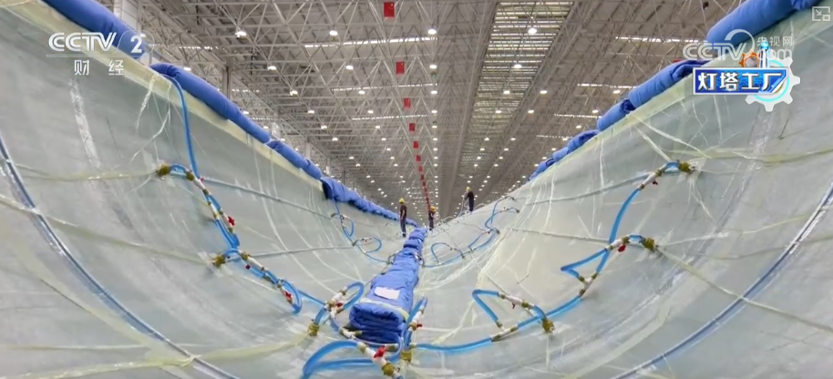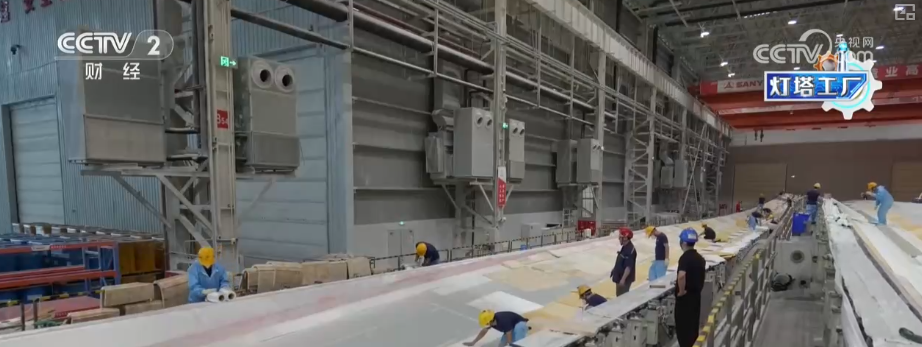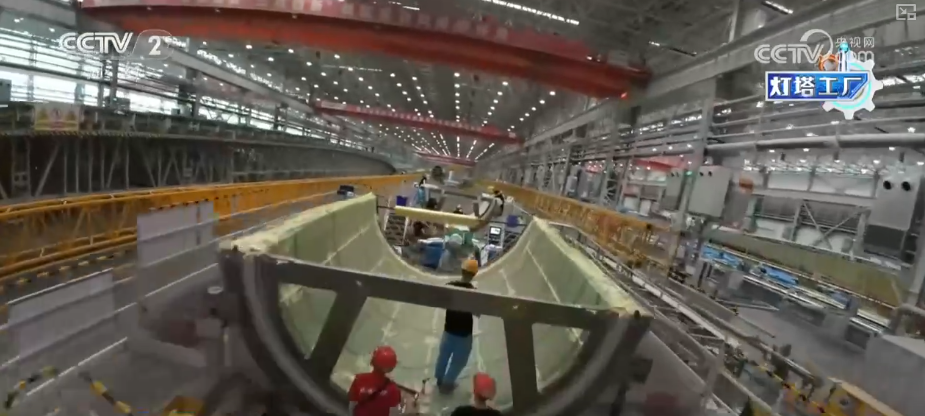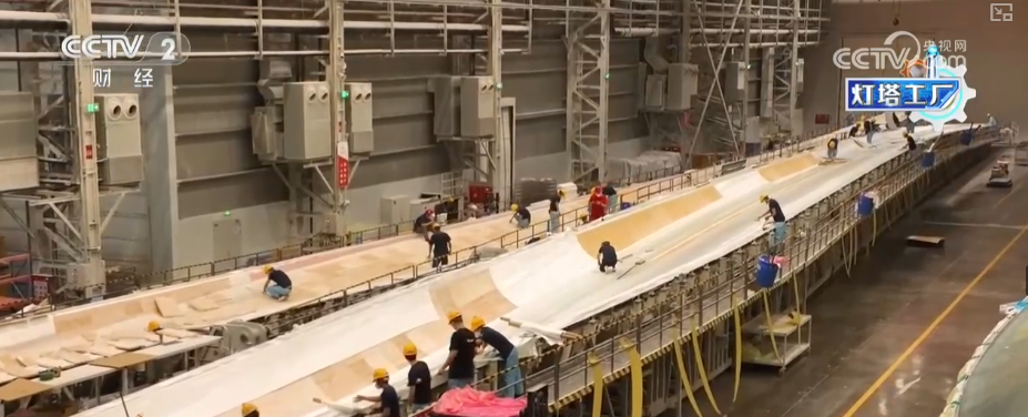 这里是湖南韶山这个的叶片工场,这个大师伙就是风机叶片。目前,这家“灯塔工场”最长能够出产118米的叶片。出产时间也从本来的平均40多个小时,缩短到现正在的30个小时摆布。