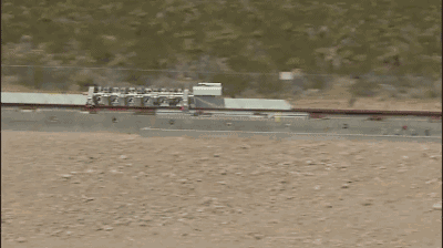 3米长的曲线推进系统正在事后铺设好的轨道上以沉力2。5倍的加快度启动,相当于正在一秒内从静止加快到85公里/小时。1。9秒后,测试原型车一头扎进91米外轨道结尾的沙堆中,减速至静止,测试成功竣事。
